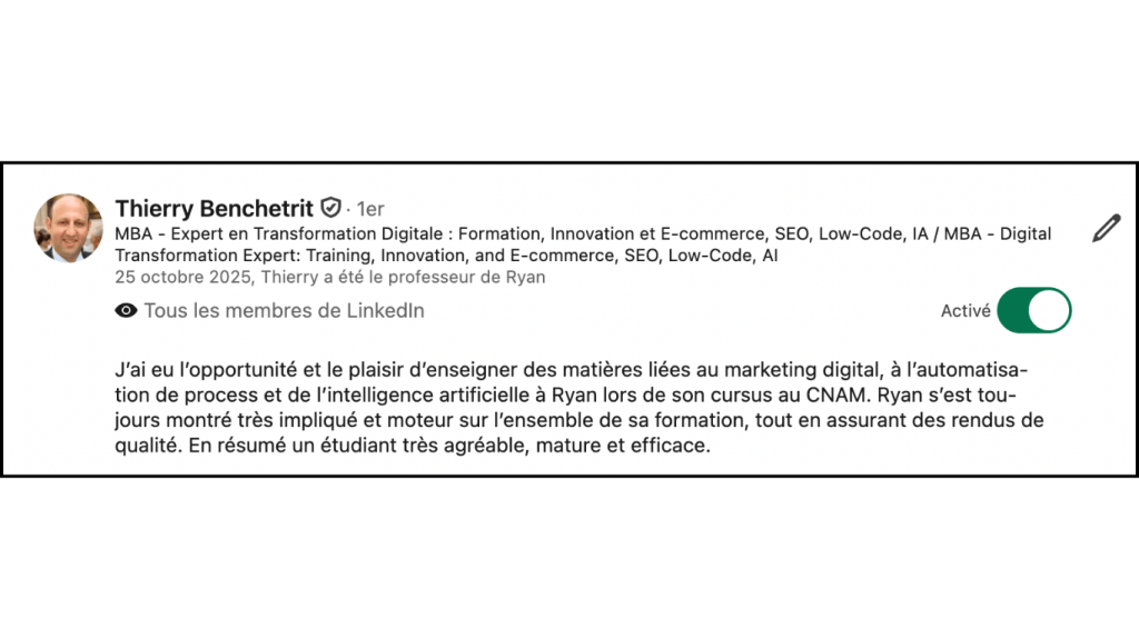 Des professionnels et formateurs qui témoignent de mon travail et de mon engagement.